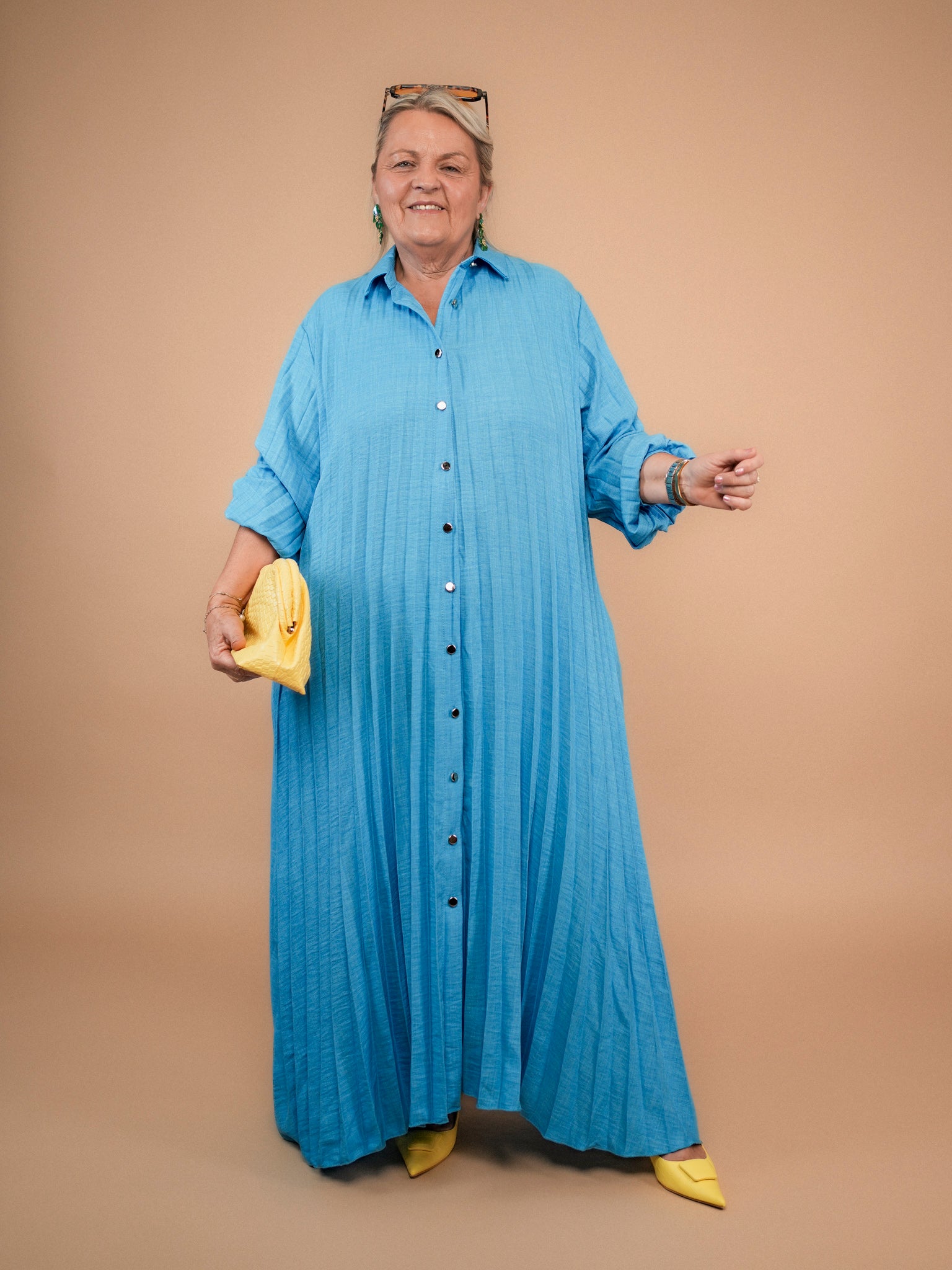 Facile à enfiler, fluide à souhait, cette robe chemise longue t’accompagne du lever du soleil au dernier verre. Sa coupe ample donne une sensation de liberté totale, parfaite pour les journées où l’on a besoin de respirer, se sentir belle, et bouger sans contrainte.